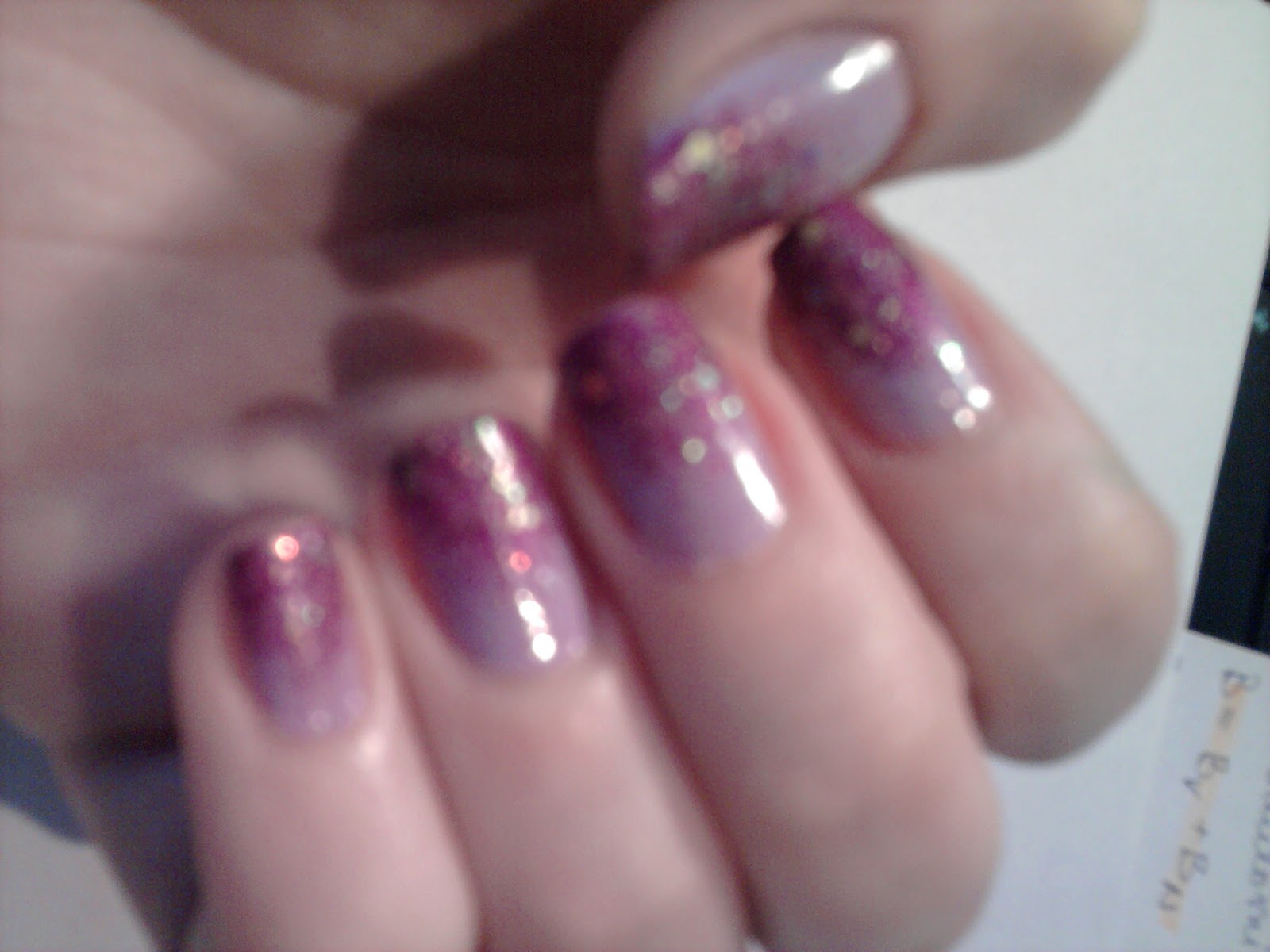Použila jsem laky značky Lemaxcolour odstín 7, Fairwind odstín 44 violet orchid, Golden rose průhledný a měnící se třpytky.